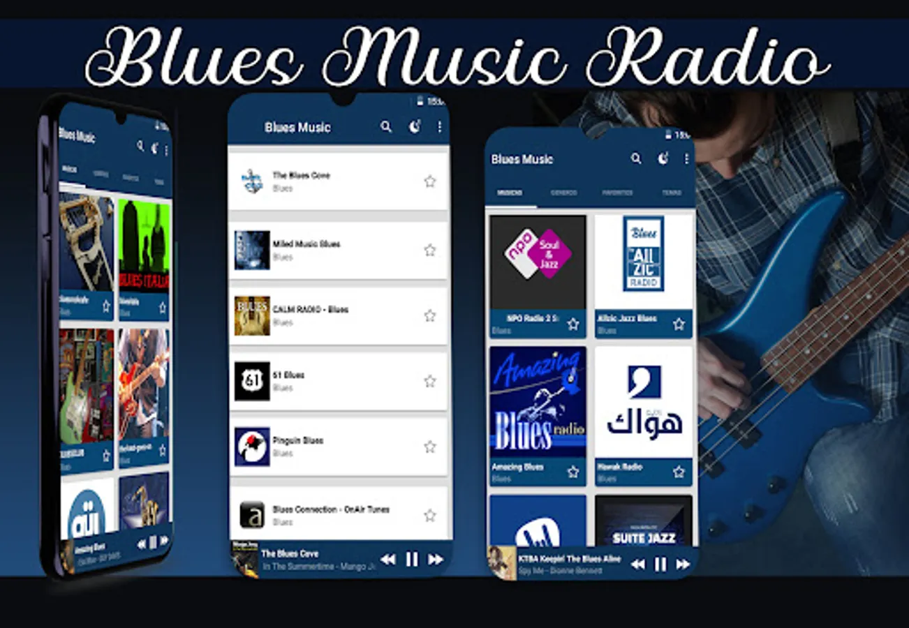 In this application you will find many Blues Music Radio Stations to enjoy online, diversity of Blues Music and Blues Jazz Radio selected exclusively for this app.