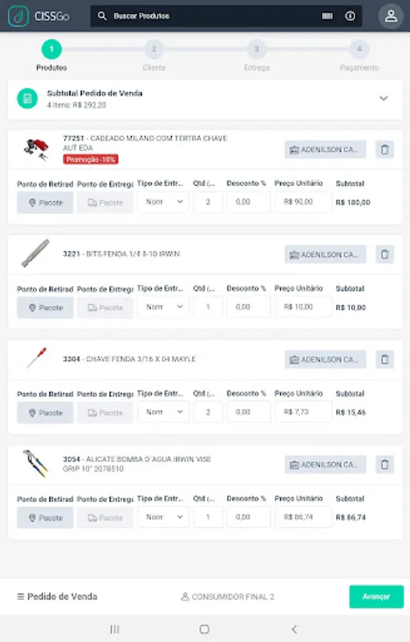 CISSGo is a web software that allows you to carry out DAV/Budgets and Sales Orders through any device, requiring only an internet browser. As an assisted sale, it means that salespeople do not need to be fixed at the sales counter to serve customers.