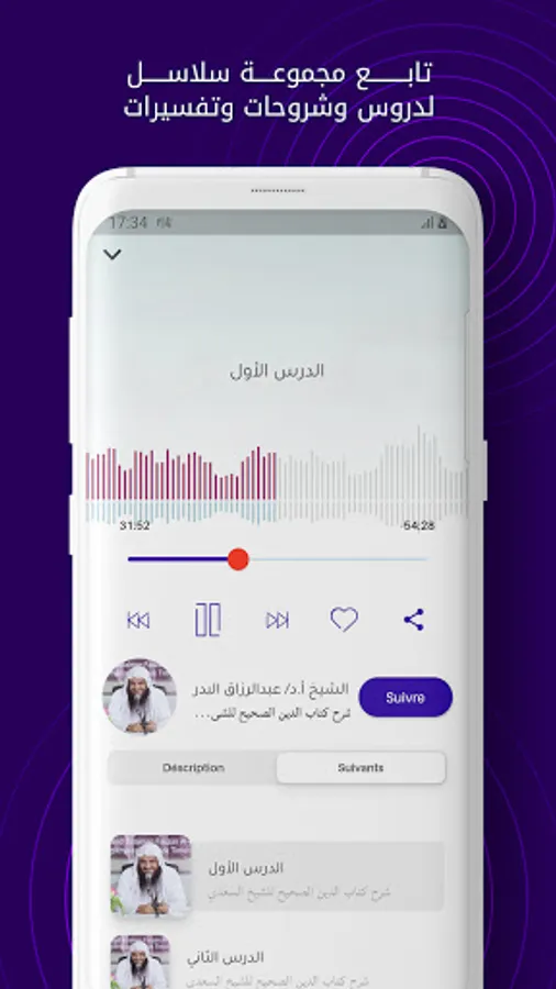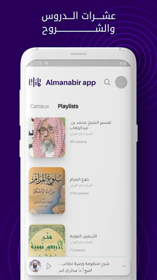 يهتم التطبيق بنشر العلم النافع من حلق ودروس علمية وخطب منبرية، يتيح للمستخدم البحث ومتابعة السلاسل العلمية لكبار علماء الأمة وكذلك تسجيل ومشاركة الحلق من قبل طلبة العلم.