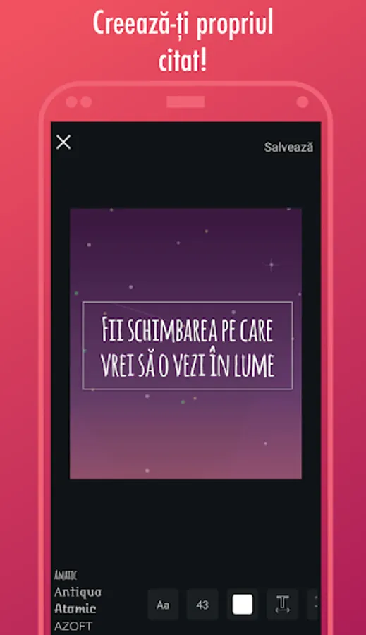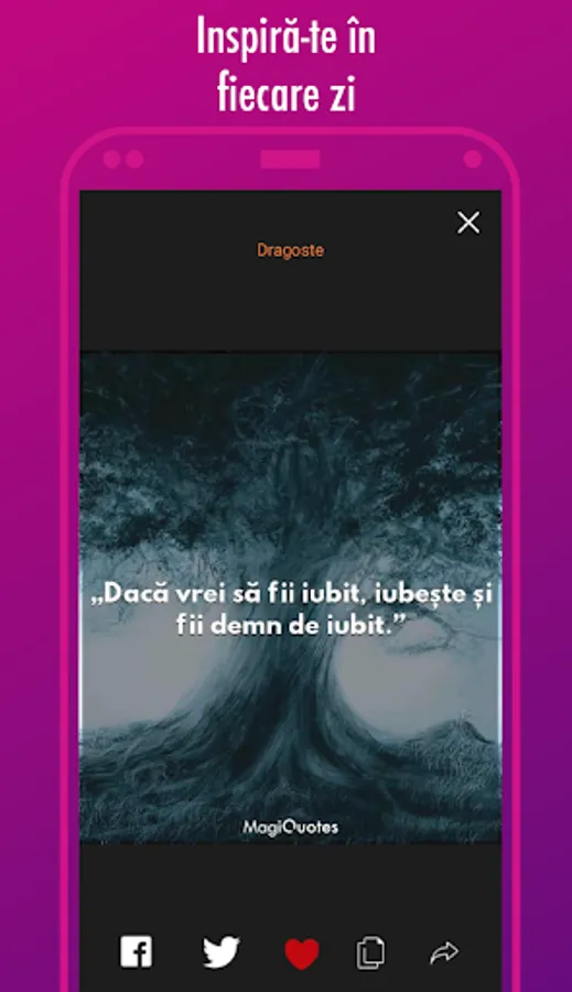 Poți să salvezi citatele preferate, să le împărtășești cu prietenii, persoana iubită, sau familia.