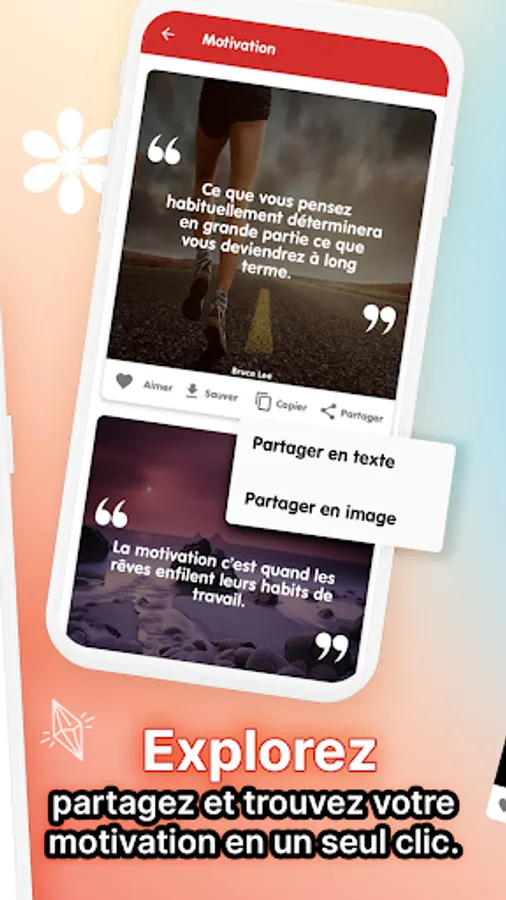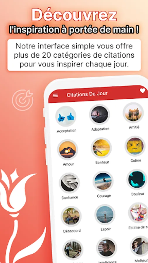Don't miss our flagship feature: 'Quote of the Day'. Each morning, discover a carefully chosen quote to inspire and energize you. Personalize your experience by changing the background image of each quote, creating a visual synergy between text and illustration.