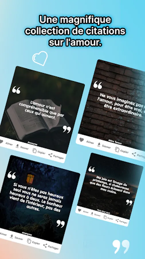 And that's not all ! As you explore our apps, you'll discover a whole host of other treasure troves of various quotes and designs. Immerse yourself in a universe of diversity where each application offers a unique and stimulating experience.