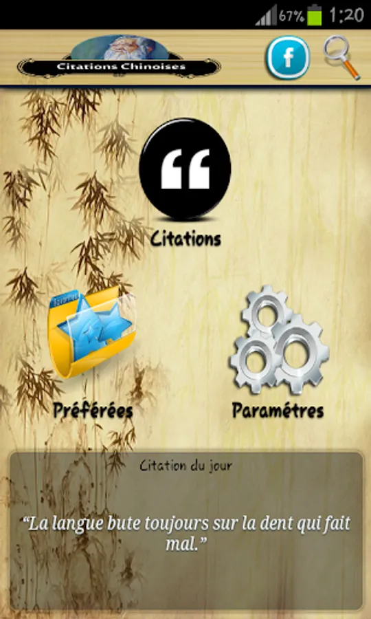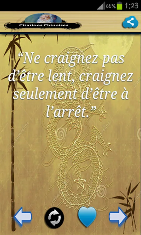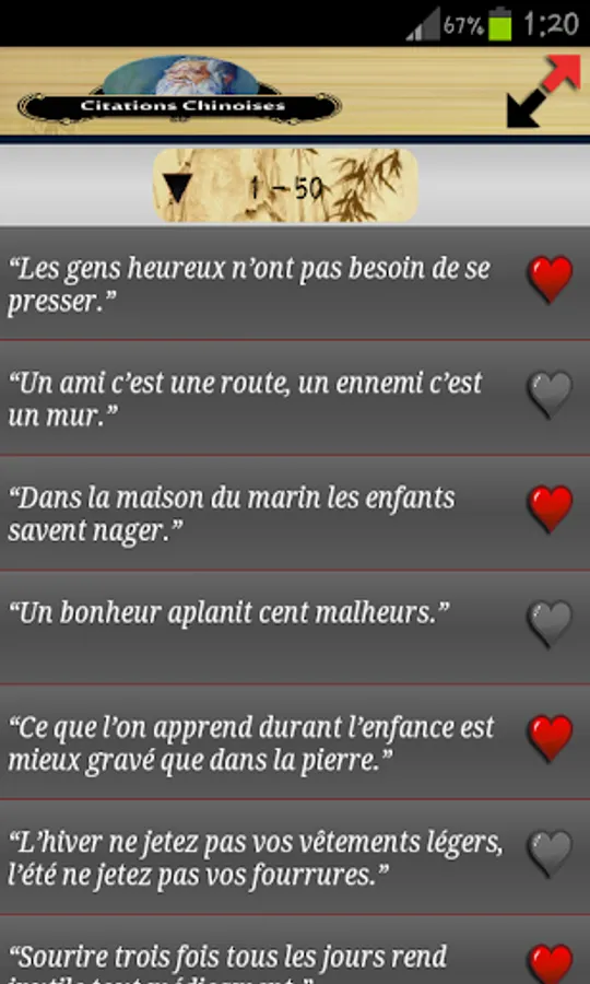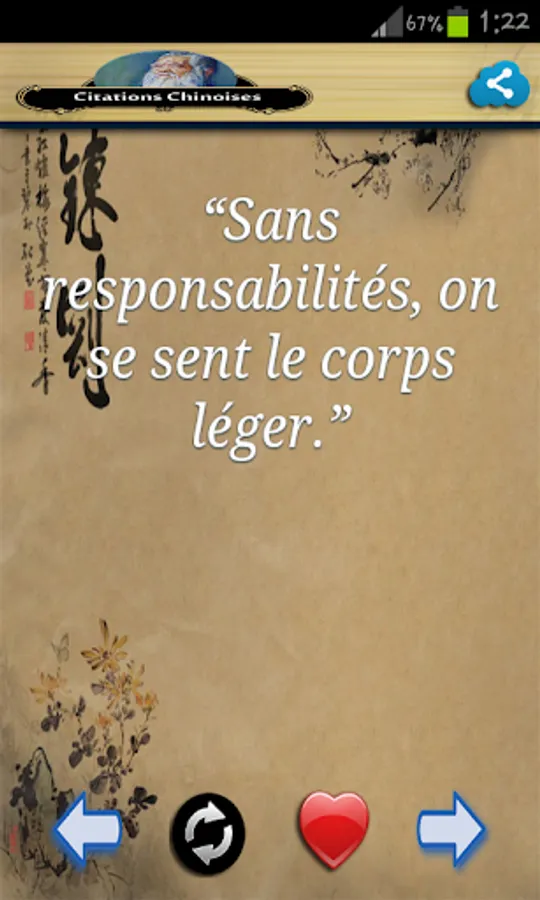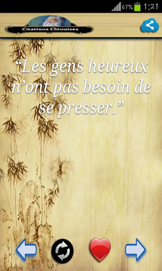 The application of "Chinese Quotations" is free, it contains the best quotes of wisdom in different domains, as an example: friendship, love, bonheur..etc .