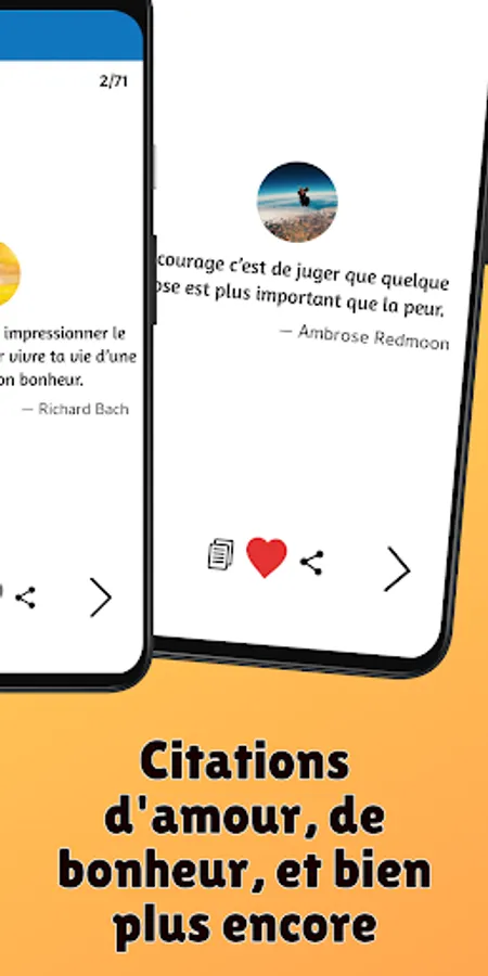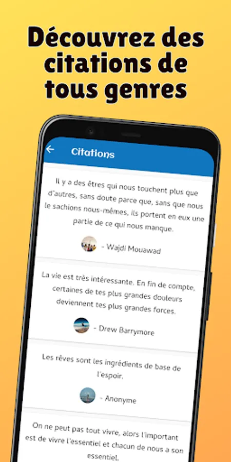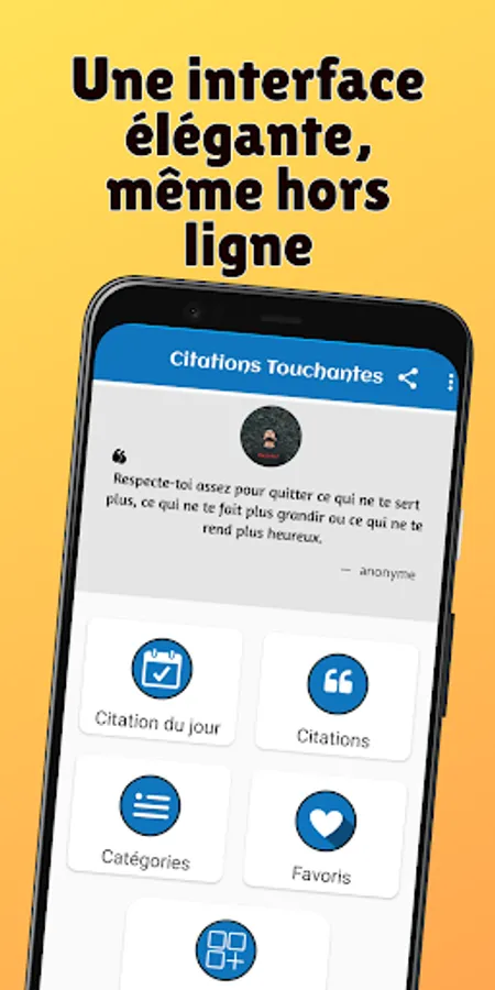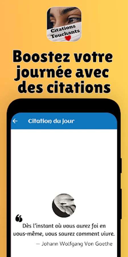 In short, the "Touching Quotes & Proverbs" application is an ideal tool for those looking for inspiration, motivation or simply a phrase to share on social networks. It offers a pleasant experience, helps to forget the problems of everyday life, provides pleasure and allows you to stay motivated throughout the day, quickly and without an internet connection.