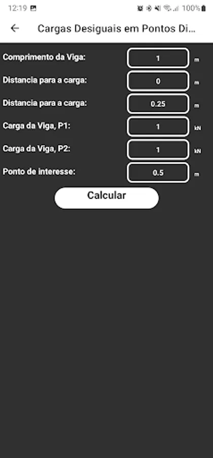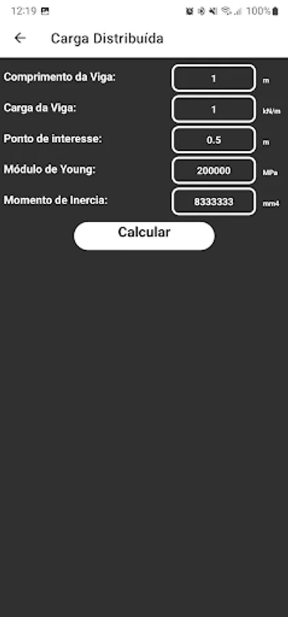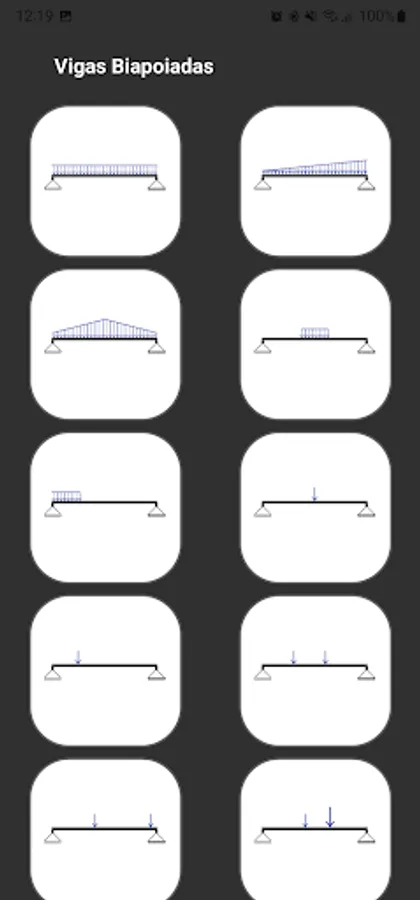 The application was built together with FAPEAL fellows from the engineering course at Centro Universitário CESMAC in order to determine the internal forces and the vertical displacement in static linear structural elements in order to assist in the teaching-learning process in the area of structures.