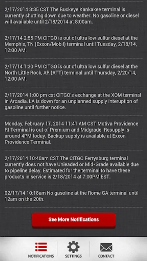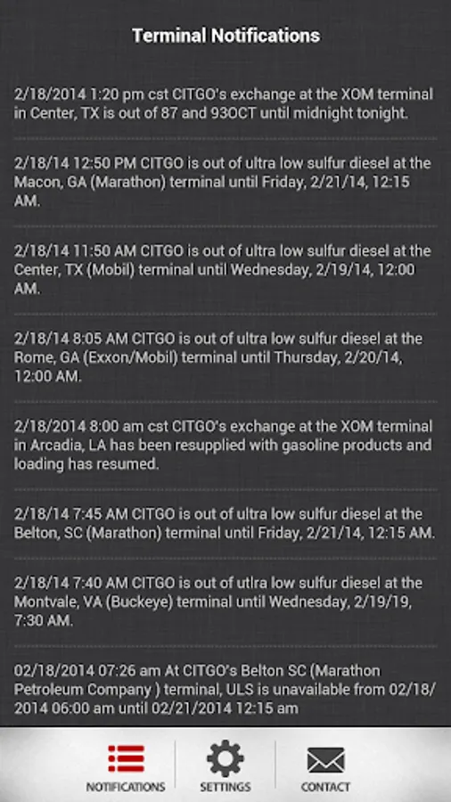 Given the fast pace of your business, the last thing you need to worry about is the frequency with which you receive terminal notifications from your supplier. CITGO understands the importance of good customer service and support and has developed a mobile app to ensure that you are able to receive real-time terminal notifications regarding supply, office closures, outages, RVP conversions and more.