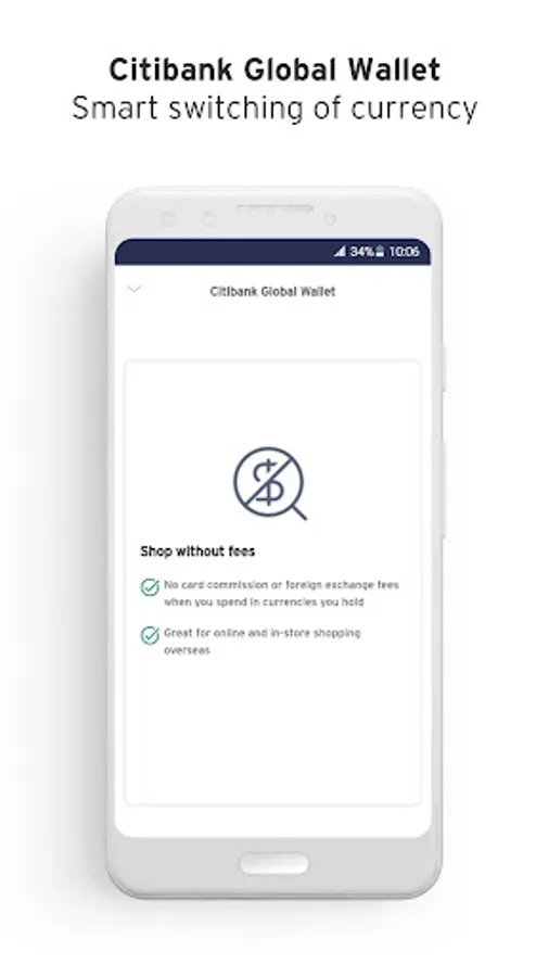 • Enable Citibank Global Wallet for intelligent currency switching to spend abroad like a local without FX and card commission fees