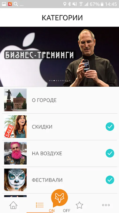 Sitifoks - friendly intelligent guide to the events of Nizhny Novgorod with the notification of the places, events and activities near you.