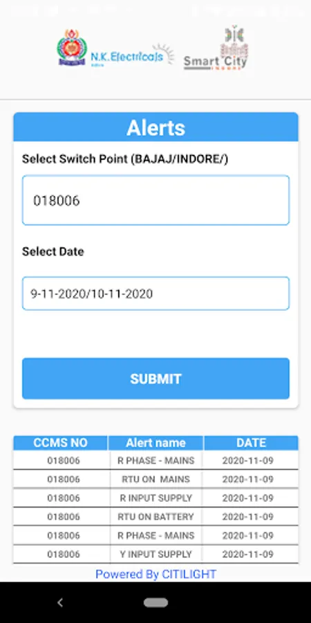 Smart street lighting app that provides complete Centralized Control & Monitoring System (CCMS) information.