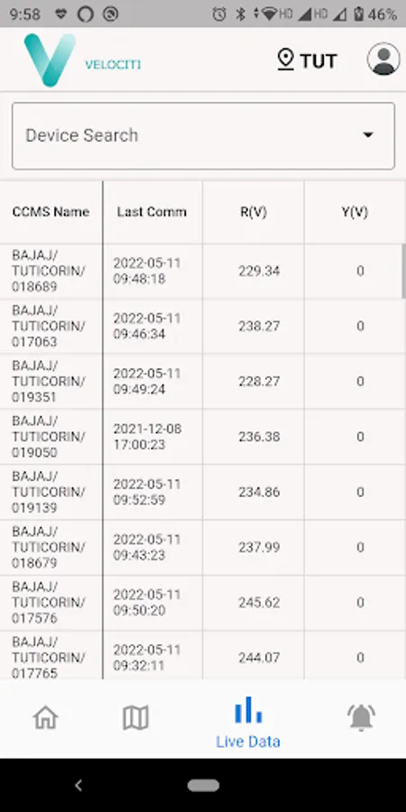 Live Data Feed - Here the live details of each device can be seen and analysed for further decision making.
