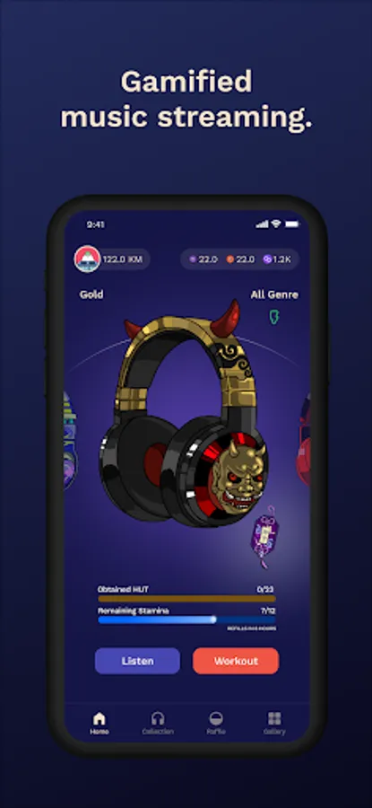 2) Explore workout and listen modes to obtain game assets