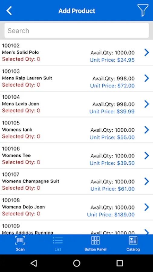 • Filter products on the basis of: Product Code, Description, UPC Code, Product Group and Product Category