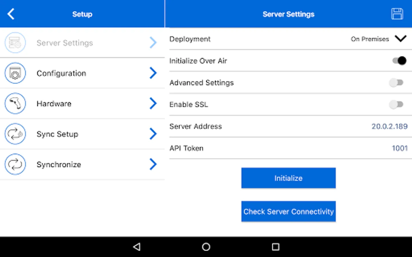 • Data Synchronization with iVend server: On specified time interval, on fixed time of the day or manually