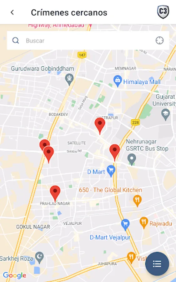 Al utilizar tecnología GPS en tu teléfono, Citizen3 busca cesa su base de datos para proveerte los eventos y crímenes que tiempo real a tu alrededor.