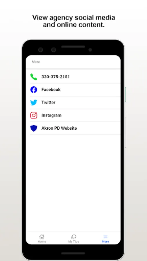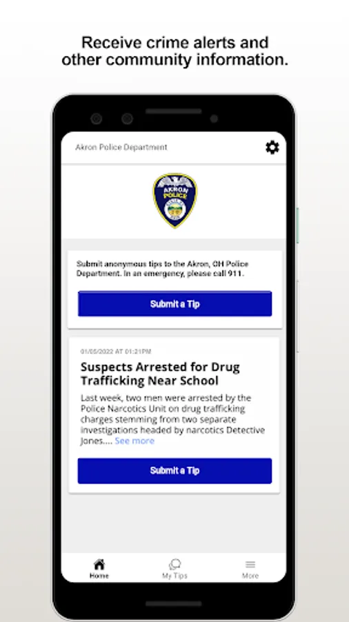 The Akron PD app provides citizens the ability to submit anonymous tips to the Akron, OH Police Department. The app also displays agency crime alerts and other organization web and social media content.