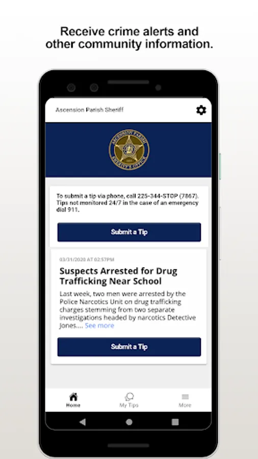 The APSO app provides citizens the ability to submit anonymous tips to the Ascension Parish, LA Sheriff's Office. The app also displays agency crime alerts, and other organization web and social media content.