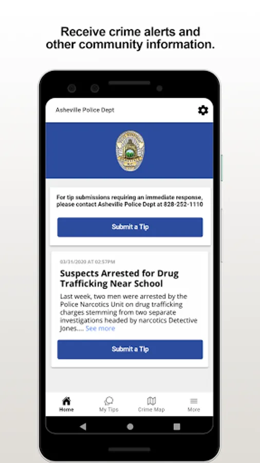 The Asheville PD app provides citizens the ability to submit anonymous tips to the Asheville, NC Police Department. The app also displays agency crime alerts, online crime map, and other organization web and social media content.