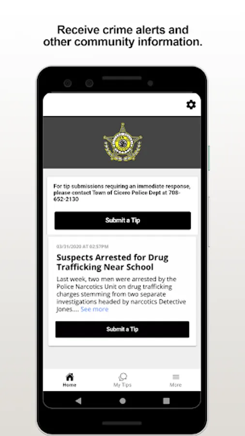 The TOCPolice app provides citizens the ability to submit anonymous tips to the Town of Cicero, IL Police Department. The app also displays agency crime alerts, and other organization web and social media content.