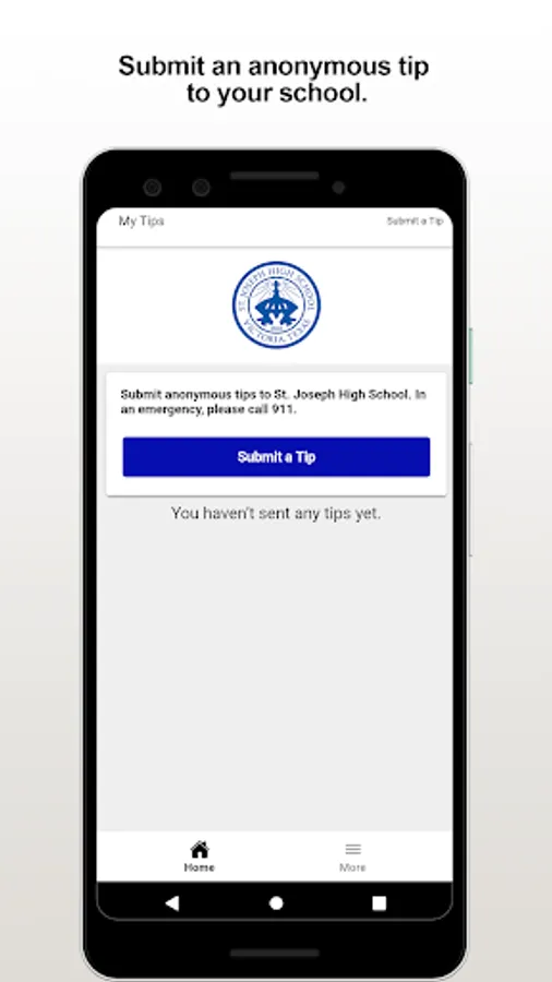 The Flyers411 app provides citizens the ability to submit anonymous tips to St. Joseph, TX High School. The app also displays organization web and social media content.
