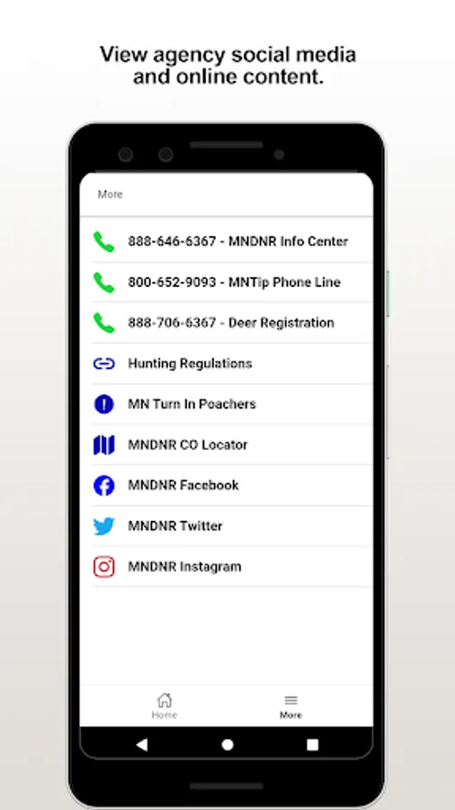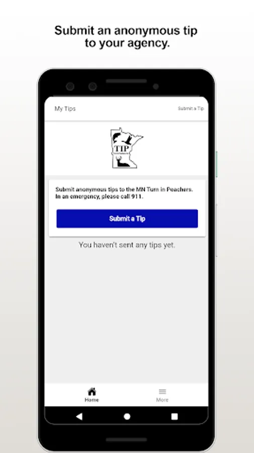 The MNTip app provides citizens the ability to submit anonymous tips to the Minnesota Department of Natural Resources. The app also displays organization web and social media content.