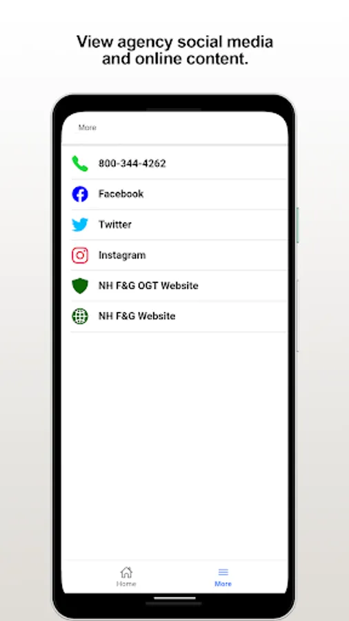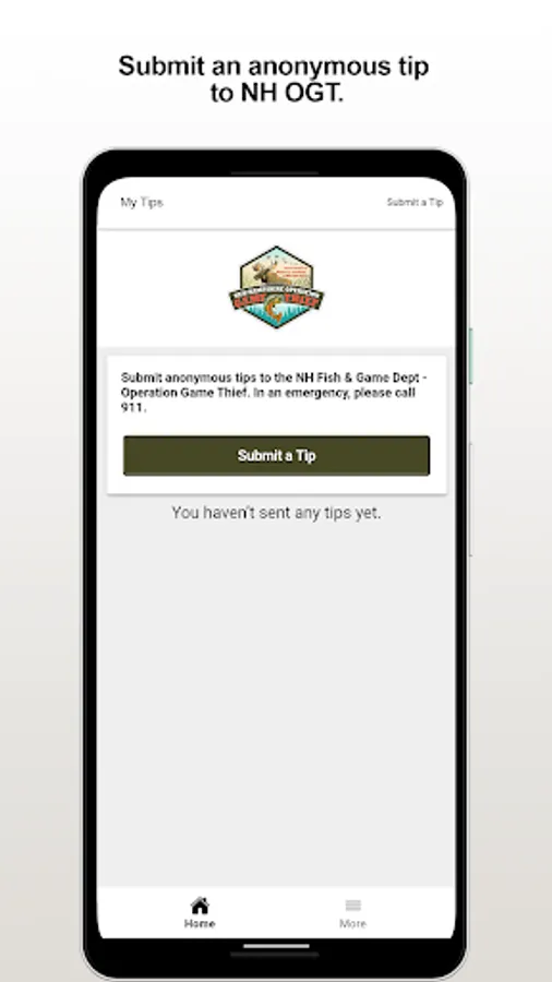 The NH OGT app provides citizens the ability to submit anonymous tips to the New Hampshire Fish & Game Department - Operation Game Thief. The app also displays organization web and social media content.