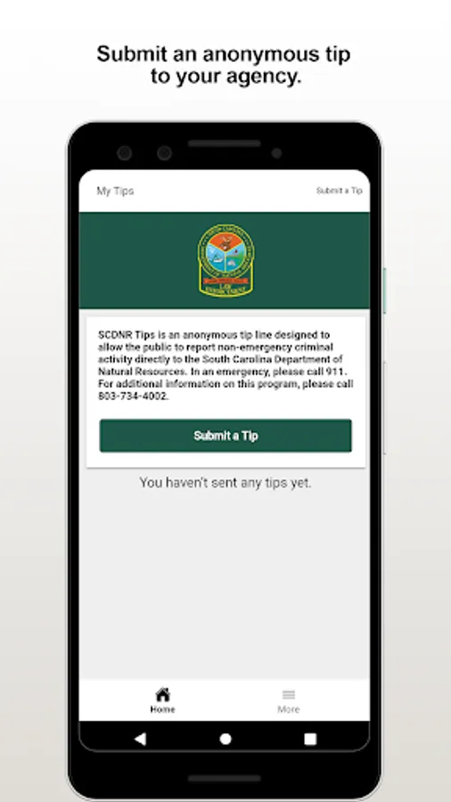 The SCDNR Tips app provides the ability to submit anonymous tips to the South Carolina Department of Natural Resources.The app also displays organization web and social media content.