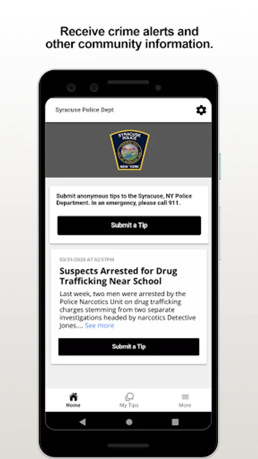 The Syracuse PD app provides the community the ability to submit anonymous tips to the the Syracuse, NY Police Department. The app also displays agency crime alerts, and other organization web and social media content.
