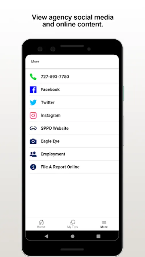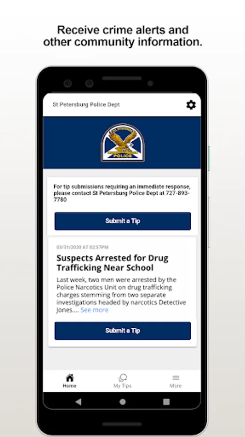 The St. Petersburg PD app provides citizens the ability to submit anonymous tips to the St. Petersburg, FL Police Department. The app also displays agency crime alerts and other organization web and social media content.