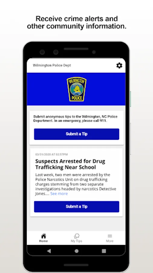 The Wilmington NC PD app provides citizens the ability to submit anonymous tips to the Wilmington, North Carolina Police Department. The app also displays agency crime alerts and other organization web and social media content.
