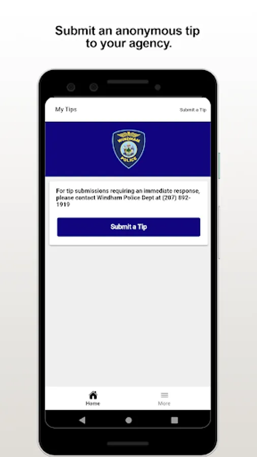 The Windham PD app provides citizens the ability to submit anonymous tips to the Windham, ME Police Department. The app also displays organization web and social media content.