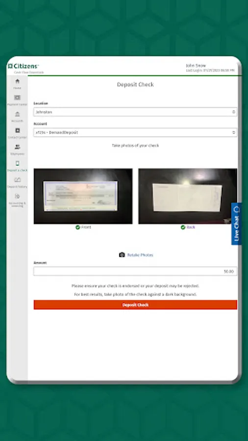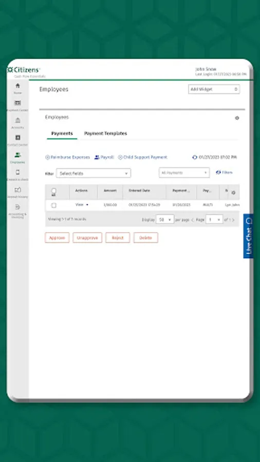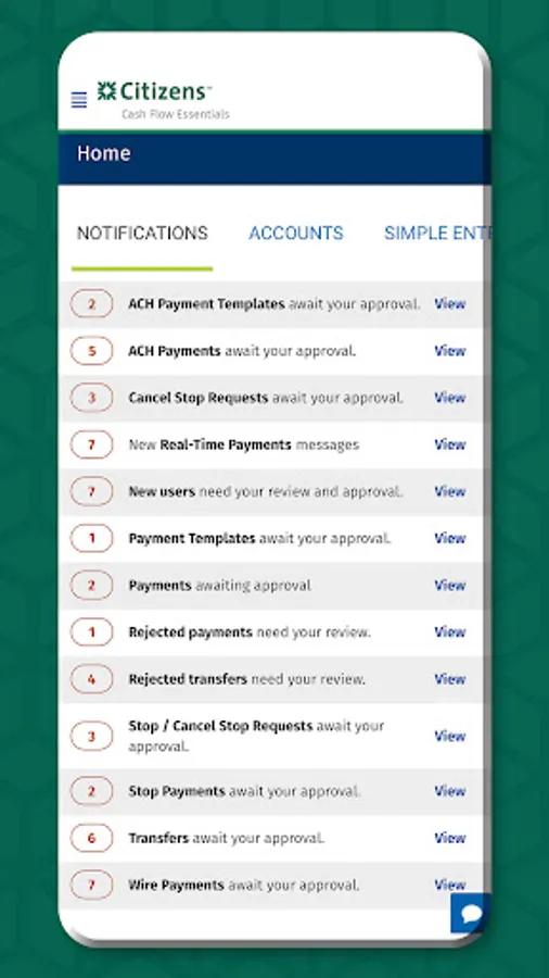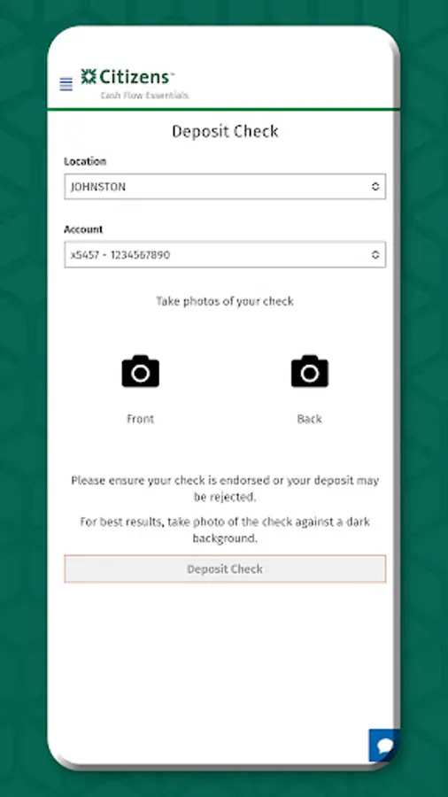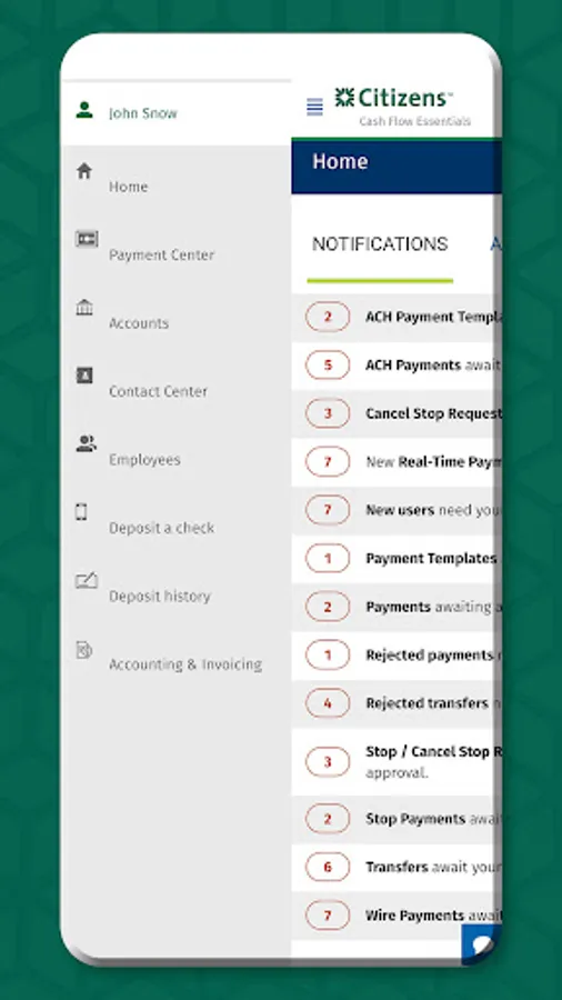 Services offered through Citizens Cash Flow Essentials™ may consist of, but are not limited to, the following: real-time payments, domestic ACH credit payments, wire origination, Citizens business loan payments and draws, unlimited mobile check deposits, stop payments, internal account transfers, bill pay, and reporting.