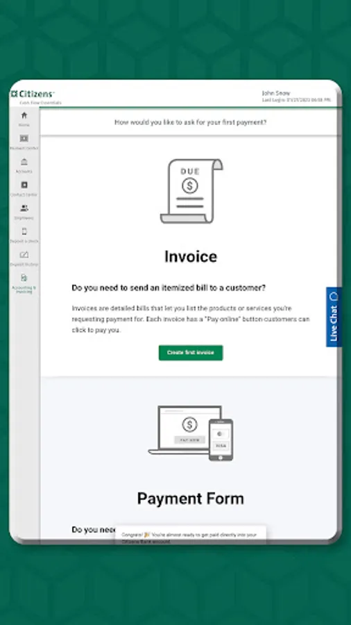 Citizens Cash Flow Essentials™ is a digital simple, online and mobile banking platform and payment suite. It provides access to real-time information, seamless payment functionality and practical tools to help customers meet daily cash flow requirements and make well-informed business decisions.