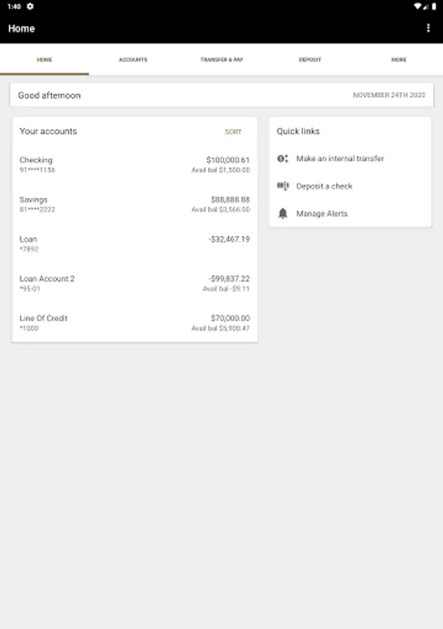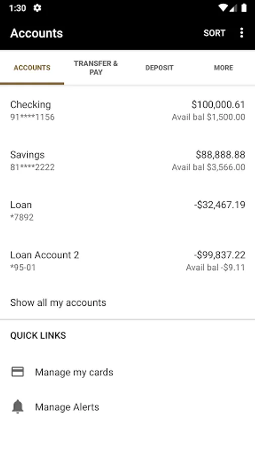 Locations- Find nearby Branches and ATMs using the Android's built-in GPS. Additionally, you can search by zip code or address.