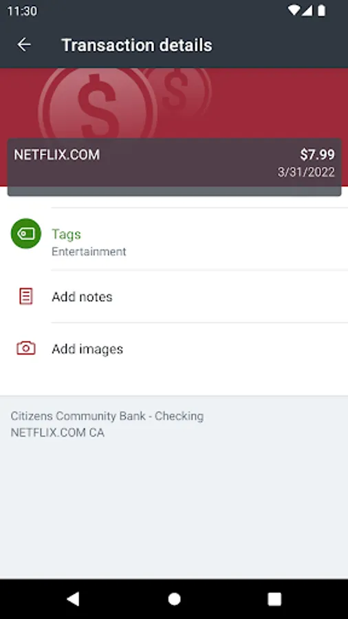 Keep your transactions organized by allowing you to add tags, notes, and photos of receipts and checks.
