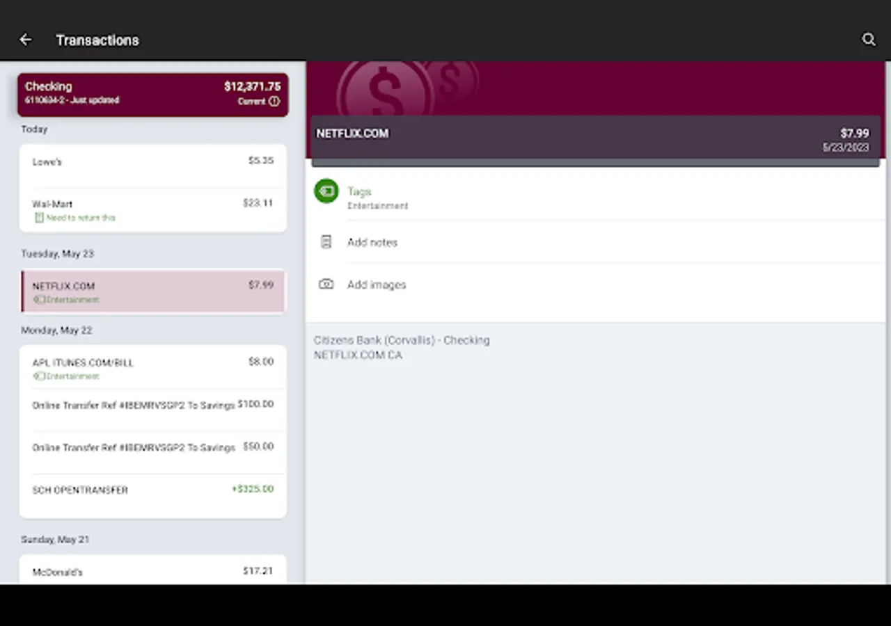 · Organize transactions by adding tags, notes, and photos of receipts or checks