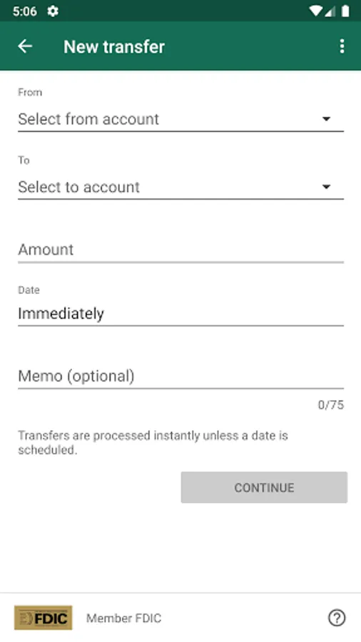 - Contacts: To easily select a contact from your device to pay using the Popmoney person-to-person payments feature