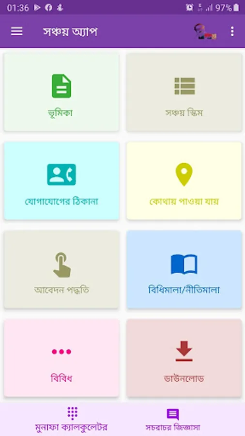 Sanchay App is the official app for general public information about savings scheme of Department of National Savings. The Bengali word "Sanchay" means saving. There are more than ten sanchay schemes operated by Sanchay Odhidoptor. This app describes about all these Sanchay schemes there interest rates and the procedure to invest your money by maintaining these sanchay scheme.