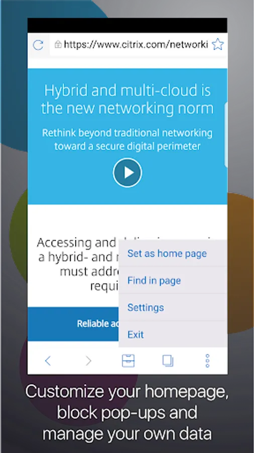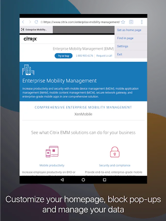 Be it an enterprise or a BYOD program, you can confidently turn your mobile device into a business tool – Access the Internet and your corporate intranet though single sign-on. The app works seamlessly with Cigna Mail and Cigna Mobile Edit. With XenMobile, you can also manage the app with security policies that suit your organization's needs.