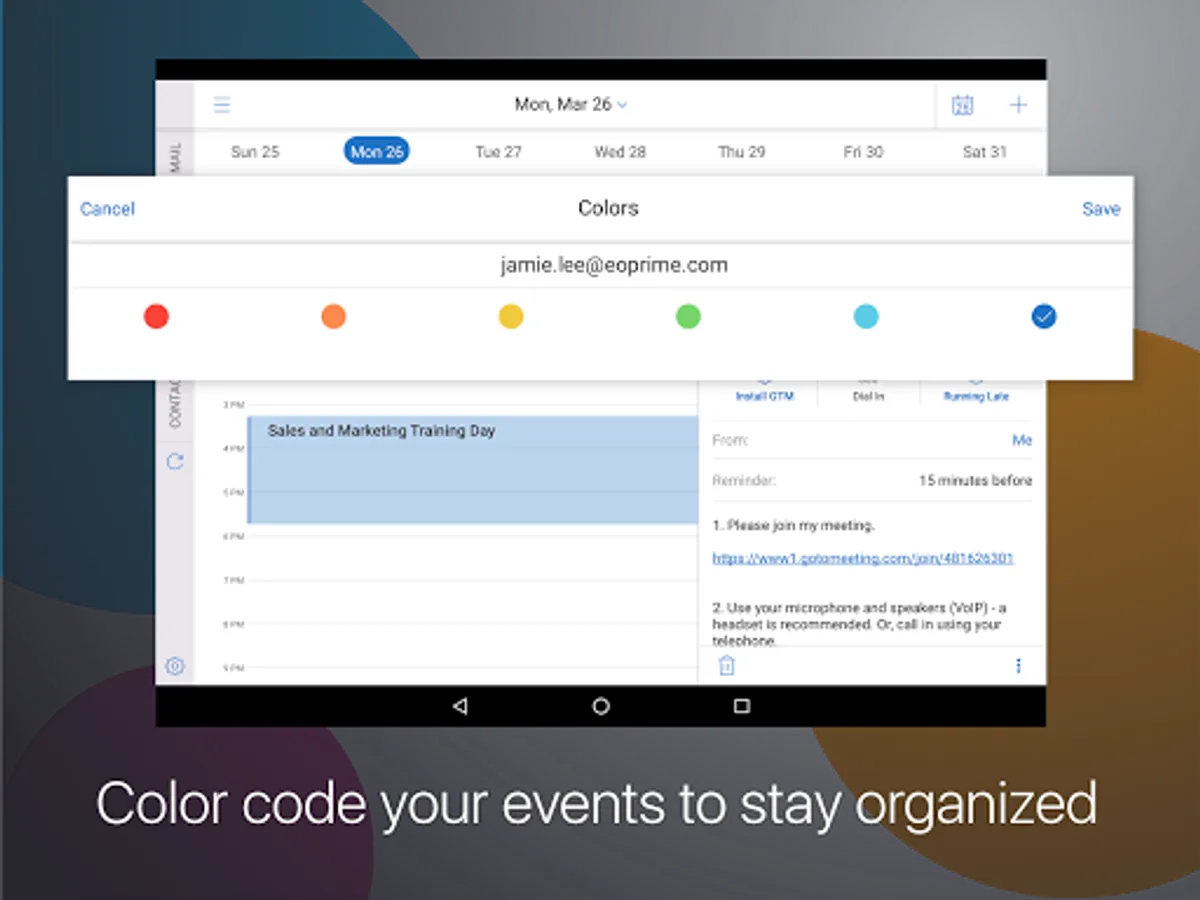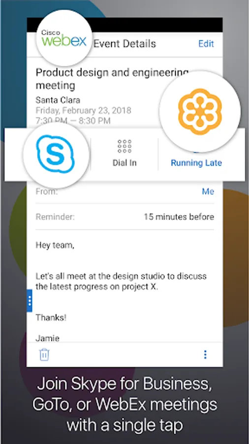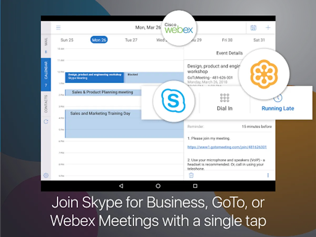Be it an enterprise or a BYOD program, you can confidently turn your mobile device into a business tool - managing emails from multiple accounts, calendars (business and personal), and contacts. All without compromising your personal data. The app works seamlessly with Cigna Secure Drive, Cigna Mobile Edit, Skype for Business, and GoToMeeting.