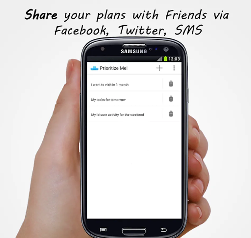 - Share your todos with friends on Facebook, Twitter, via SMS or Email to gain vital encouragement and tips. You can also send your priority list directly to your todo app of choice (Any.do, Google Task, Remember the Milk, etc.).