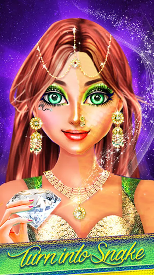 - Accessorize snake girl with bedazzling jewelry & multiple shiny glitter naagin colors