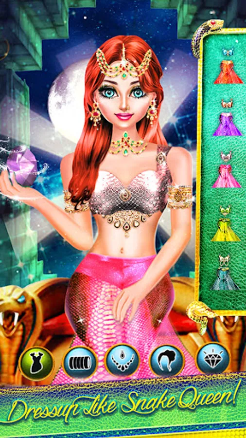 - Magical Dressup in vibrant royal costumes for snake dragon queen.