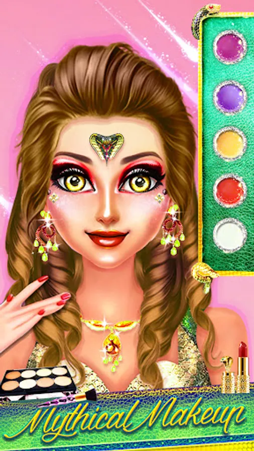 Fashion girls loving get ready to play this Indian nagin salon, makeup & dress up game. Entertain yourself, do mystical indian make up & Dress up in super shiny vibrant mesmerizing snake costumes. complete beauty makeover with ethnic jewelry, bangles glow in dark Makeup & Naag mani ,a precious diamond which bring good luck, health & wealth to the possessor. Enjoy Enchanting snake music & Ichadharri Naagin dance on traditional snake charming tunes.Explore old Indian culture in this interesting games for Nagin fantasy Indian girls.