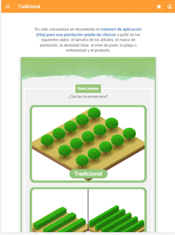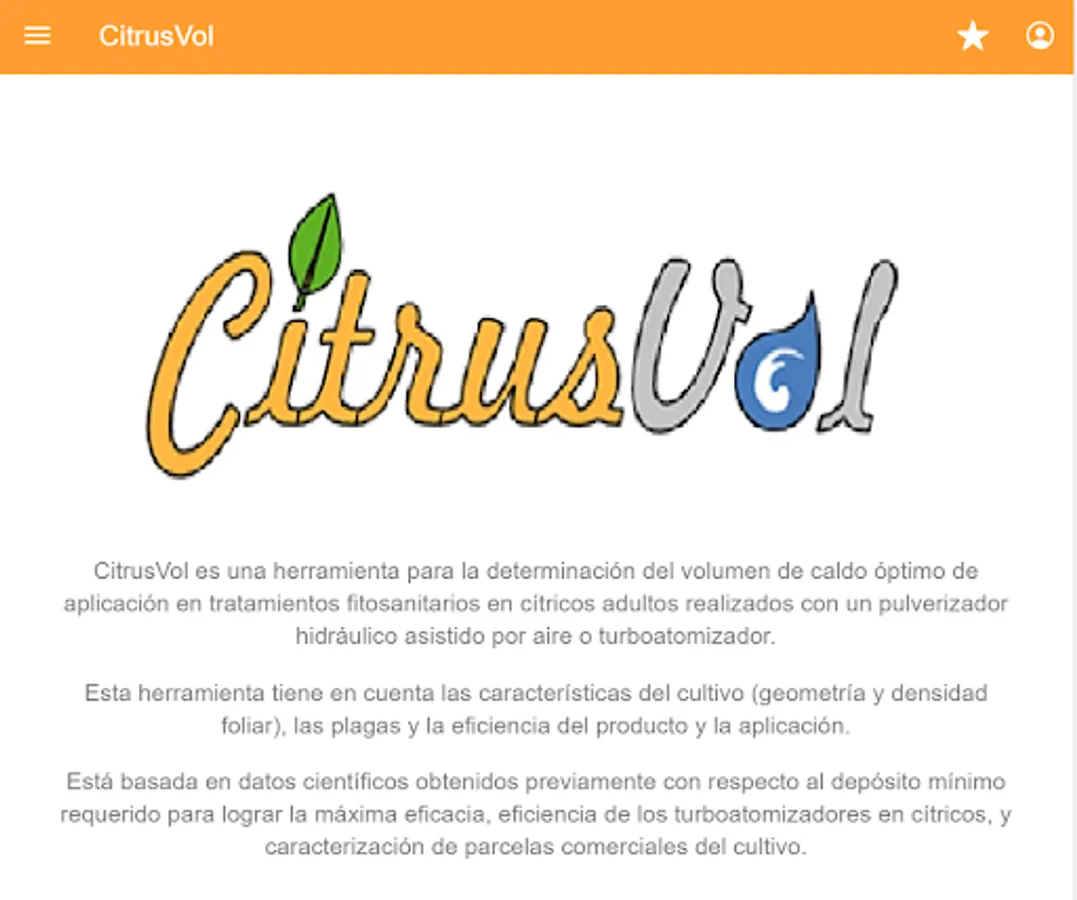 CitrusVol is a tool for determining the optimal volume of broth for application in phytosanitary treatments on adult citrus fruits carried out with an air-assisted hydraulic sprayer or turboomizer.