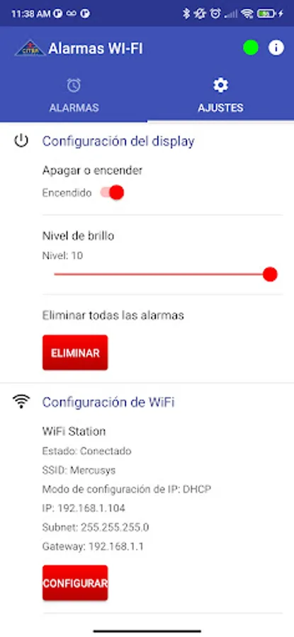 ♦ Update of the time and date of the display directly from the mobile phone or from an NTP server.