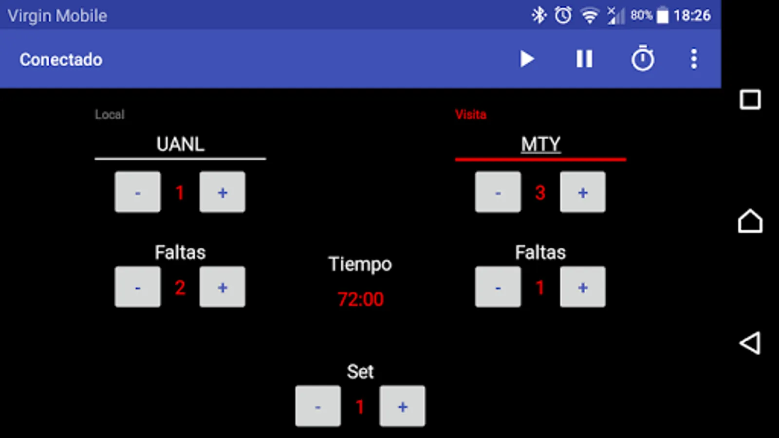 ♦ Control name, score, number of fouls and the current set home team and visiting.