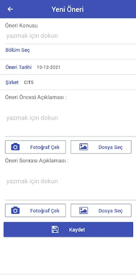 It enables Coşkunöz Holding employees to create and follow "Efficient Suggestions" and "Near Miss" records via the mobile application.