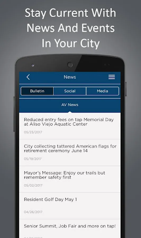 This is your Aliso Viejo connection for news, information, recreation & reporting. Users are up-to-date with the latest events and meetings in the city. Protect your city and report graffiti, potholes or damages using the app’s geo tagging capabilities by snapping a photo! The My Aliso Viejo app is rich with information regarding the latest news, updates and directions to the hottest places in Aliso Viejo. Everything in Aliso Viejo is in the palm of your hand. Download now to experience it for yourself!
