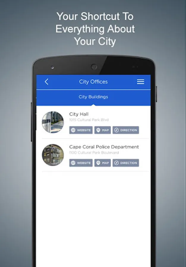 The CapeConnect mobile app provides residents simplified access to a variety of information & services including: