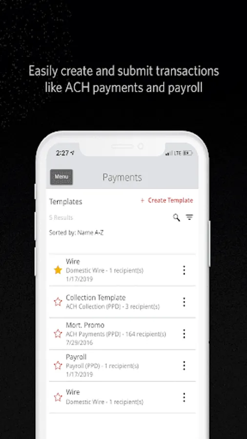 • Submit ACH payments, collections, and wire transfers